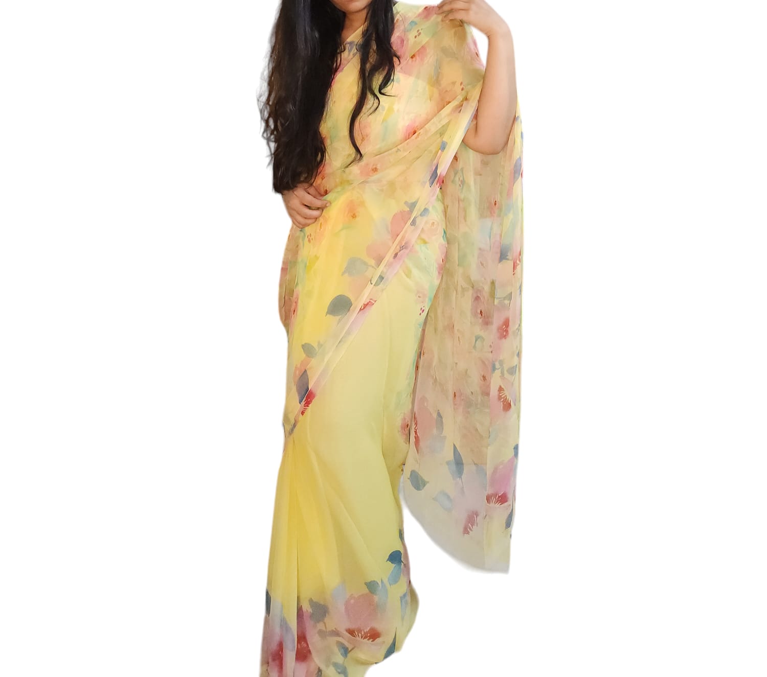 Yellow Floral Colorful Chiffon Saree